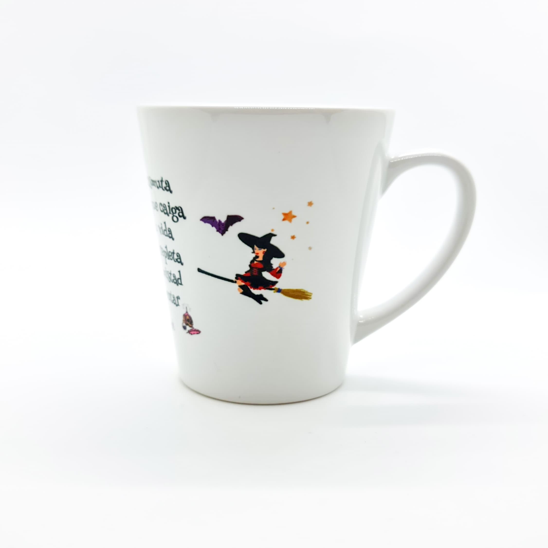 Taza de cerámica blanca 300ml con frase positiva: «Aquí se transmuta todo brebaje…»