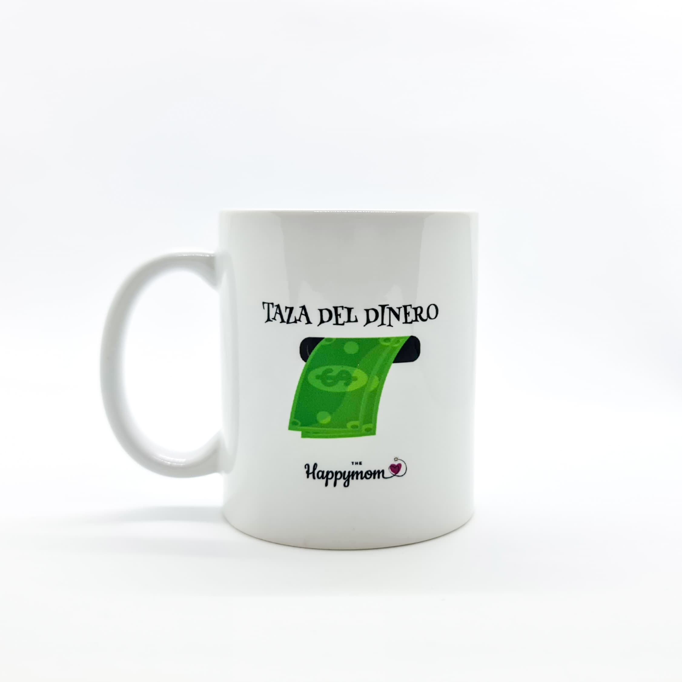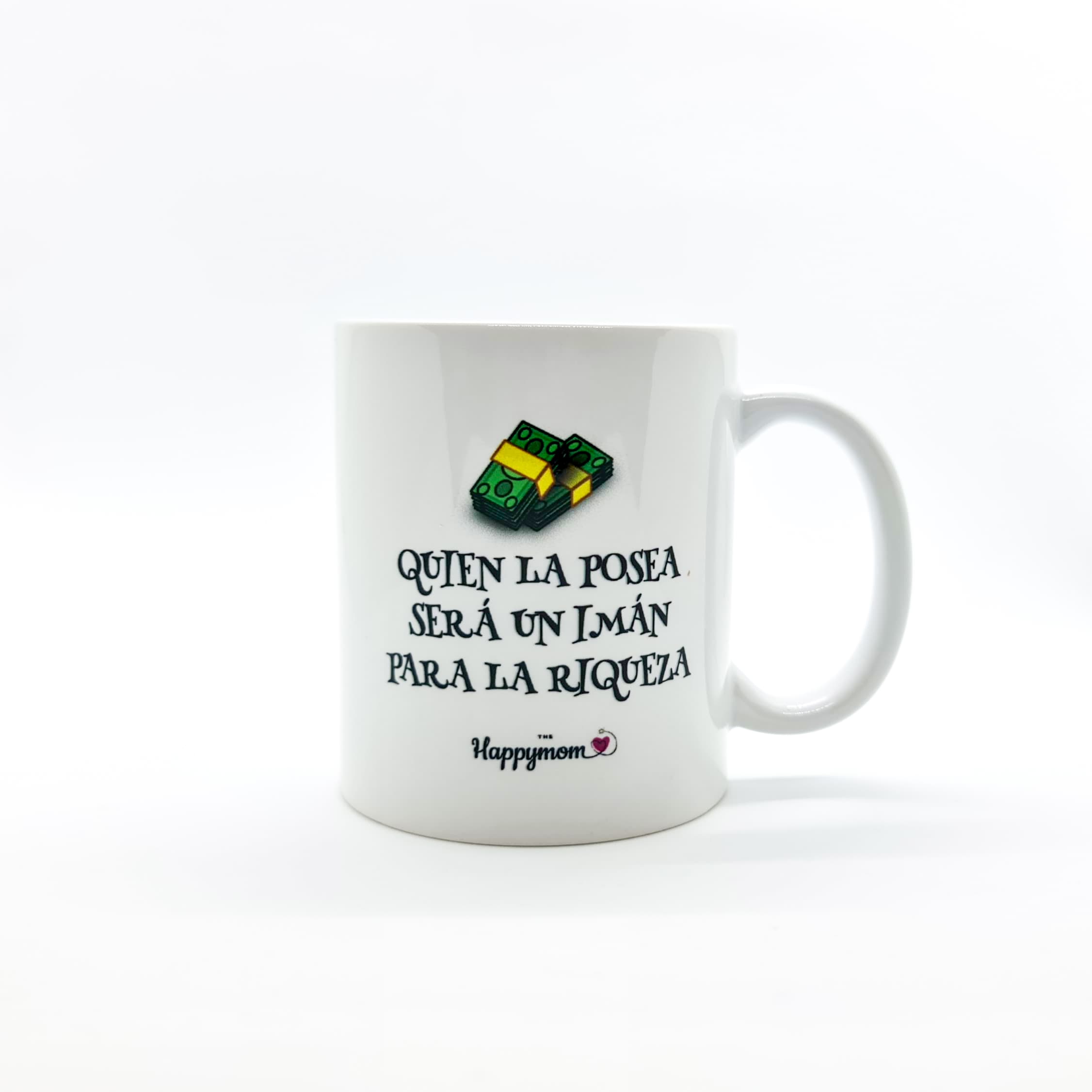 Taza de cerámica blanca 350ml con frase positiva: «Taza de dinero…»